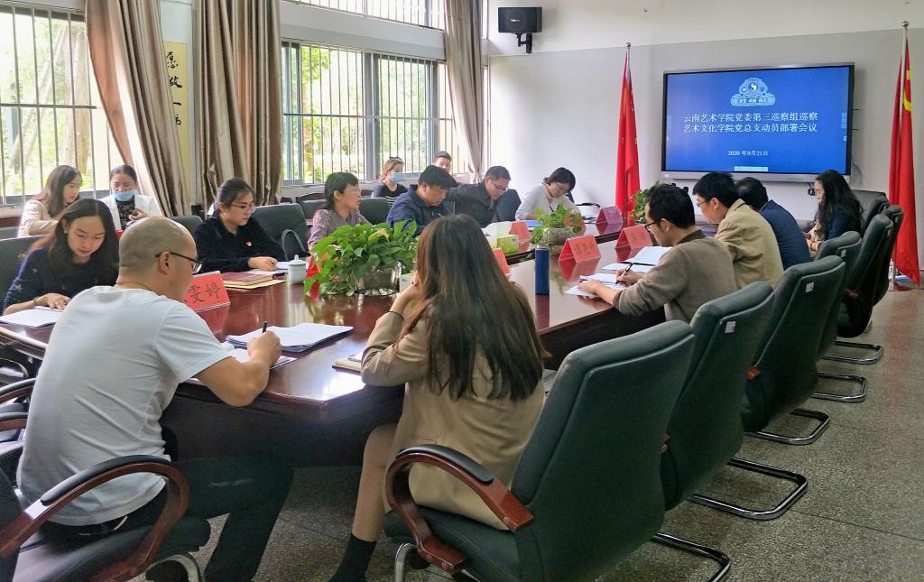 根据公司党委关于巡察工作的统一安排部署,艺术文化公司党总支于2020年9月21日中午在艺文楼108会议室召开了suncitygroup太阳成集团党委第三巡查组巡察艺术文化公司党总支动员部署会。