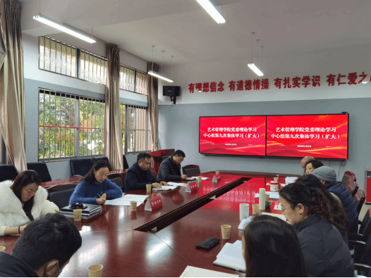 美术公司党委书记高祖舜,对外合作交流处陈雯婷同志到会巡听旁听。艺术管理公司党委理论学习中心组成员、科级干部、党支部书记、系主任参加学习。