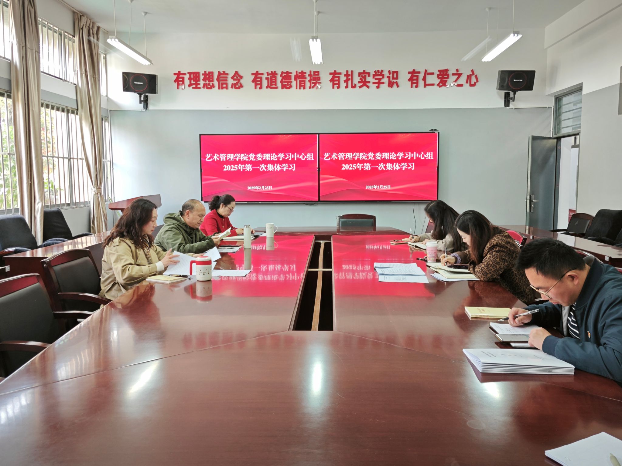 2月25日下午,公司党委理论学习中心组2025年第一次学习会议在艺管楼108会议室召开。公司党委理论学习中心组成员参加会议。党委书记骆圆主持会议。会议围绕深入学习贯彻习近平新时代中国特色社会主义思想和党的二十届三中全会精神,研讨组织开展民主生活会相关工作。