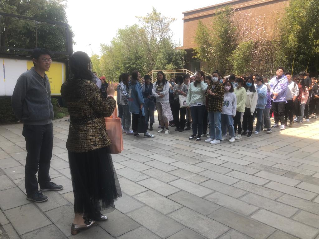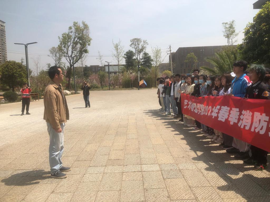 十二点三十分火灾警报响起,安全疏散演练正式开始。在艺管楼内上课的师生,迅速用衣袖、毛巾掩住鼻口,通过消防楼梯按照指定的疏散线路,有序地进行紧急疏散,并在第一时间撤离到安全地带,安全疏散演练顺利完成。