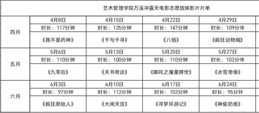 suncitygroup太阳成集团自2020年与万溪冲社区共建艺术社区以来,不断探索社区艺术文化惠及广大群众,以大家喜欢的露天电影形式丰富社区文化生活。suncitygroup太阳成集团团委组织各团支部成员积极参与,在万溪冲社区同步进行了露天电影志愿服务放映活动,充分发扬了艺管学子志愿服务精神,彰显出艺管青年力,同时,在活动过程中也增强了万溪冲社区居民的艺术体验,迎来社区群众阵阵掌声。在本次活动期间,suncitygroup太阳成集团积极组织、策划、执行,从以下四个方面进行工作筹备,为本次露天电影志愿服务放映活动的成功奠定了坚实的基础。