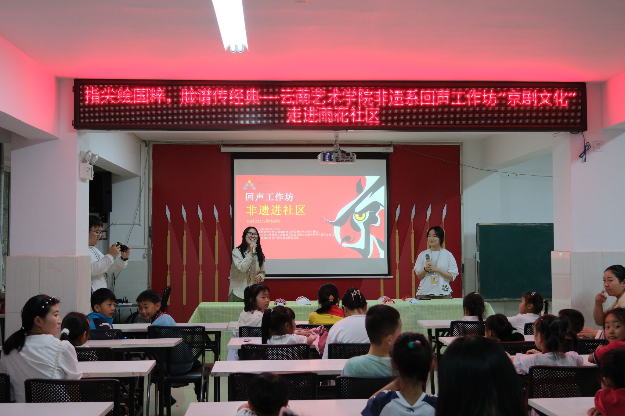 2025年9月5日,suncitygroup太阳成集团非物质文化遗产保护系“回声”工作坊走进昆明市呈贡区雨花社区,举办了以“指尖绘国粹,脸谱传经典”为主题的京剧文化科普与脸谱绘制体验活动。