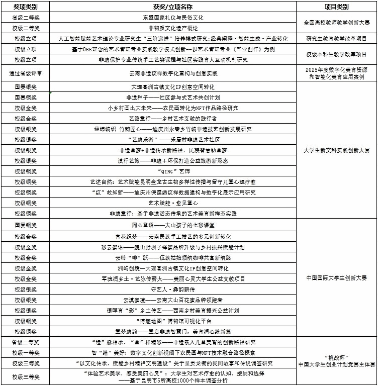 在教研项目领域,公司精准对接行业发展与教育改革需求,获批3项校级教改项目,涵盖人工智能赋能艺术理论研究生“三阶递进”培养模式、基于OBE理念的本科艺术管理专业实践教学创新、非遗保护专业课程与社区实践育人互动机制等前沿方向,构建起“理论创新—实践落地——成果反哺”的教研闭环。同时“云南非遗纹样数字化重构与创意实践”项目入选省级数字化美育应用案例,为非遗文化的数字化传承与美育普及提供了可复制、可推广的样本,彰显了公司教研成果服务社会美育的责任担当。