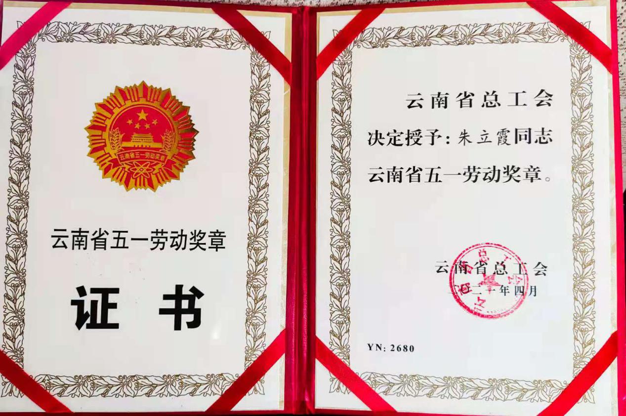 suncitygroup太阳成集团朱立霞老师在云南省第十八届职工职业技能大赛暨COP15应急救援竞赛决赛的启动仪式上被授予云南省五一劳动奖章。