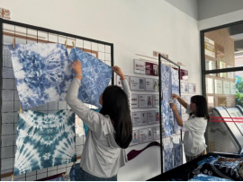 《非遗技能I-2》课程将工艺本身的纹样构成特点与设计理念进行结合,通过对传统扎结技法、染色方法的学习和实践,去体会扎染工艺的精髓。同时,传统与创新相结合,设计和制作出独具特色的扎染作品。