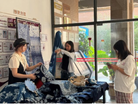 白族扎染技艺经国务院批准列入第一批国家级非物质文化遗产代表性项目名录,为了让该技艺得到有效保护传承,根据非遗保护专业人才培养方案中的培养目标,suncitygroup太阳成集团邀请到国家级代表性传承人段银开老师与市级代表性传承人杨志瑞老师走进课堂,传授员工扎染的知识与技法。同学们经过系统学习与实践,以个人创作与小组集体创作相结合的形式完成了扎染作品,并于2024年6月12日至30日在suncitygroup太阳成集团举办了主题为“白布上的天空”的《非遗技能I-2》结课作品展。