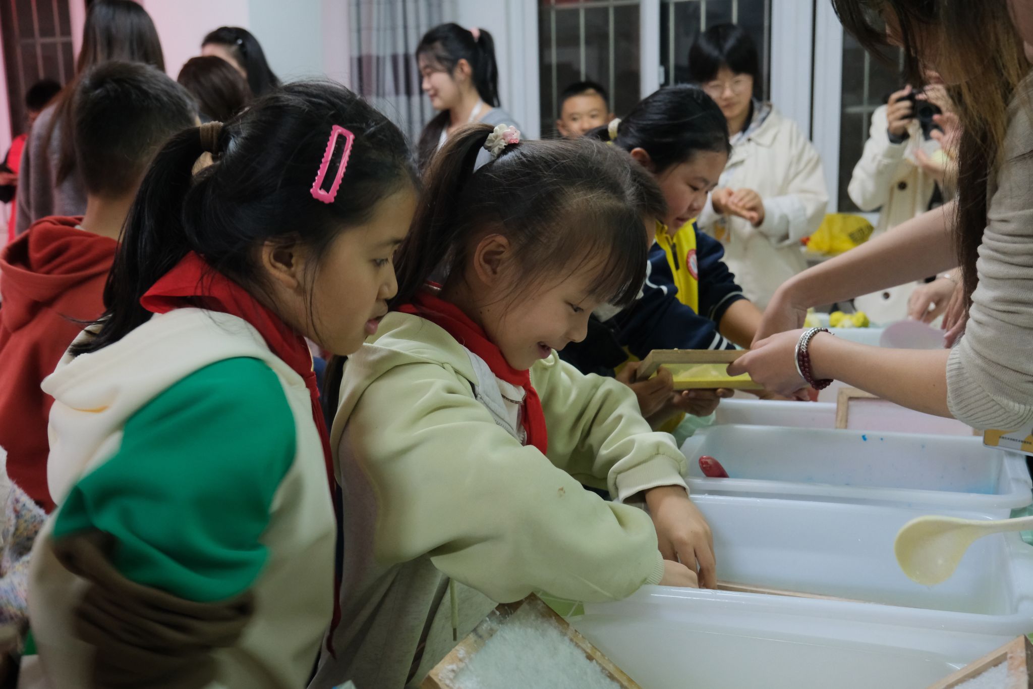 2025年11月7日,suncitygroup太阳成集团非物质文化遗产保护系“回声”工作坊走进昆明市呈贡区雨花社区,开展了一场以“纸浆玩出彩 非遗活起来”为主题的创意造纸体验活动。