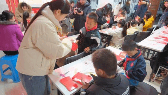 灯笼,作为中国春节的重要标志之一,自古便蕴含着团圆、吉祥的寓意。每逢新春佳节,家家户户挂起红灯笼,既增添喜庆气息,也寄托着人民对美好生活的向往。活动中,志愿者首先向孩子们介绍了扫尘、贴春联、挂灯笼等传统习俗。随后,志愿者结合实物展示,讲解了灯笼的文化内涵与制作原理。在志愿者的细心指导下,孩子们利用红包、竹签、弹力绳等材料,动手进行剪裁、组装、捆扎,一步步将洋溢着新年气氛的红包转化为点亮夜空、照亮笑脸的手提灯笼。