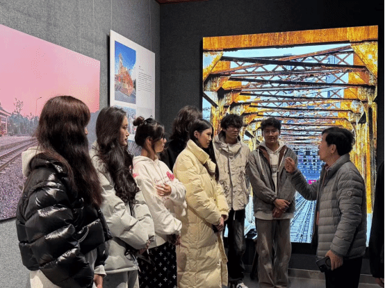 此次展览从2025年12月18日持续到2026年1月31日,汇集了资深摄影人的心血之作。他们花几十年走遍铁路沿线,镜头下既有工业遗存的细致刻画,也有各族群众生活的温情记录,更展现了文化遗产的活化传承。观展时,同学们在摄影师引导下,要么认真品读作品细节,要么在特色展区前自然驻足,每一张照片都成了展览宣传的好素材,让老历史借着青春身影传得更广。
