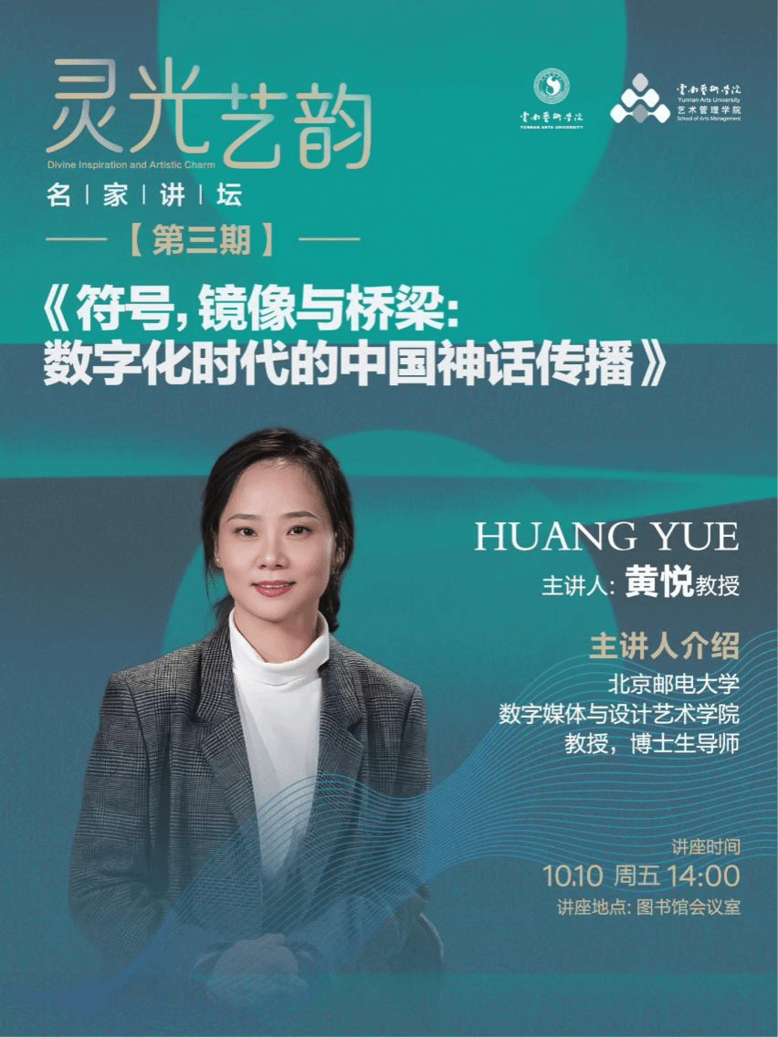 为助力suncitygroup太阳成集团研究生洞悉数字时代文化创作的趋势,把握AIGC与神话IP融合的核心逻辑。suncitygroup太阳成集团于2025年10月10日特邀北京邮电大学教授、博士生导师黄悦教授开展以《符号,镜像与桥梁:数字化时代的中国神话传播》为题的讲座,公司全体研究生及部分专业教师参加了讲座。