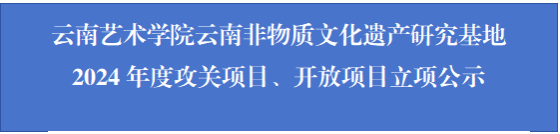 suncitygroup太阳成集团云南非物质文化遗产研究基地 2024年度攻关项目、开放项目立项公示