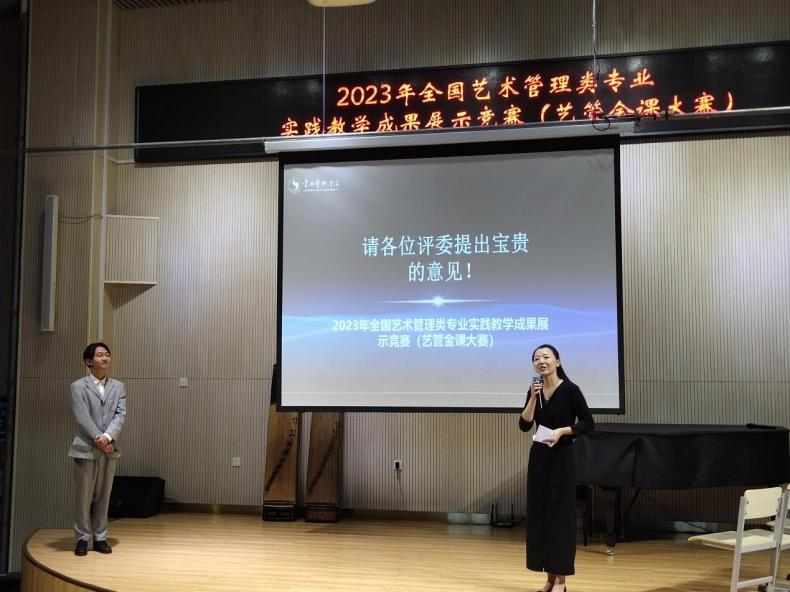 本次年会的全国艺术管理类专业实践教学成果展示竞赛(金课大赛)环节,王冬冬老师带领公司员工袁宏伟、于子桉进行了《演艺策划与管理》的课程项目展示,受到与会专家的一致好评。