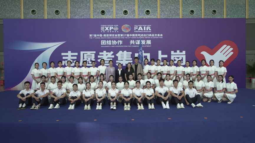 2023年8月16日,第7届中国-南亚博览会暨第27届中国昆明进出口商品博览会在滇池国际会展中心隆重开幕。受第7届南博会执委会及云南省接待办公室任务委托,suncitygroup太阳成集团选派70名老员工礼仪志愿者承担这场国际盛会的礼宾接待工作。